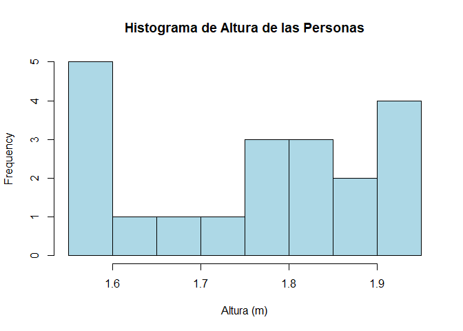 hist(datos$Altura, main = "Histograma de Altura de las Personas", xlab = "Altura (m)",