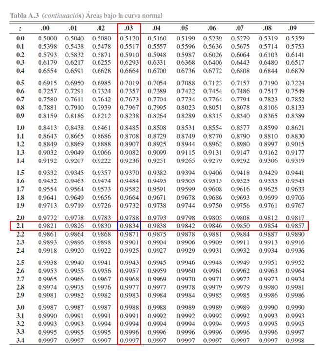 \(\mathbb{P}(Z\leq 2.13)\), la cual podemos buscar en la tabla
