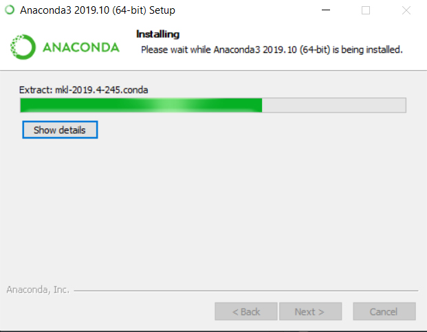 Una vez se completa la instalación, pueden observar los detalles de la instalación presionando el botón Show details o simplemente presionar el botón Next >